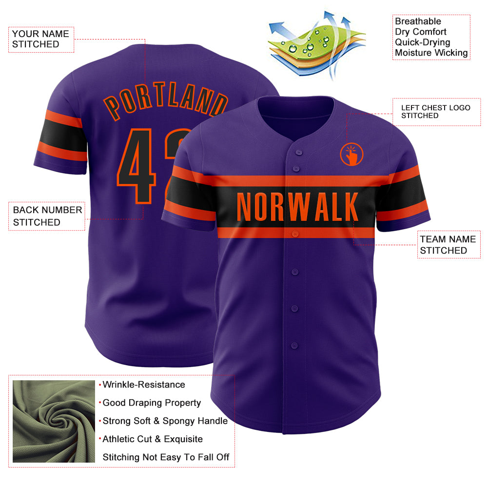 Custom Purple Black-Orange Authentic Baseball Jersey