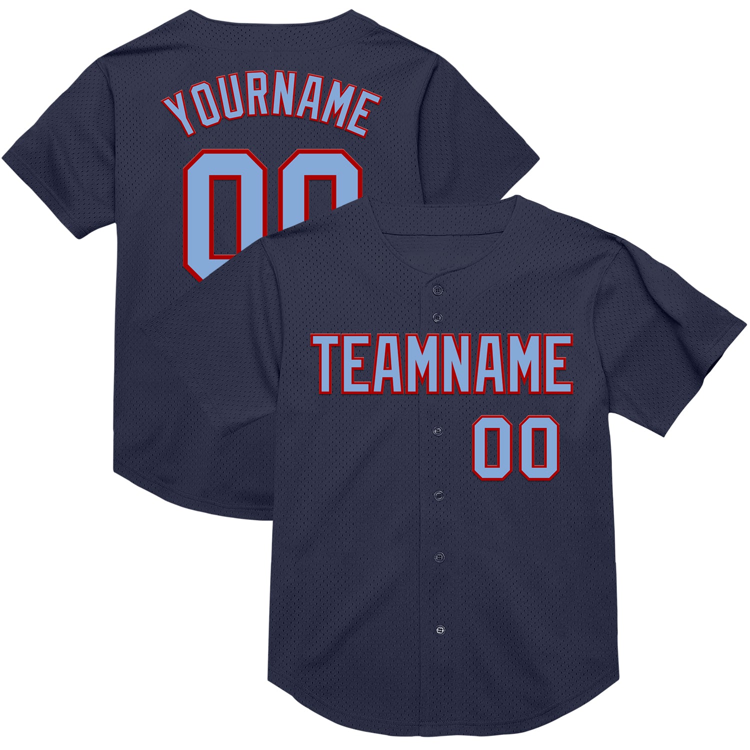 Custom Navy Light Blue-Red Mesh Authentic Throwback Baseball Jersey