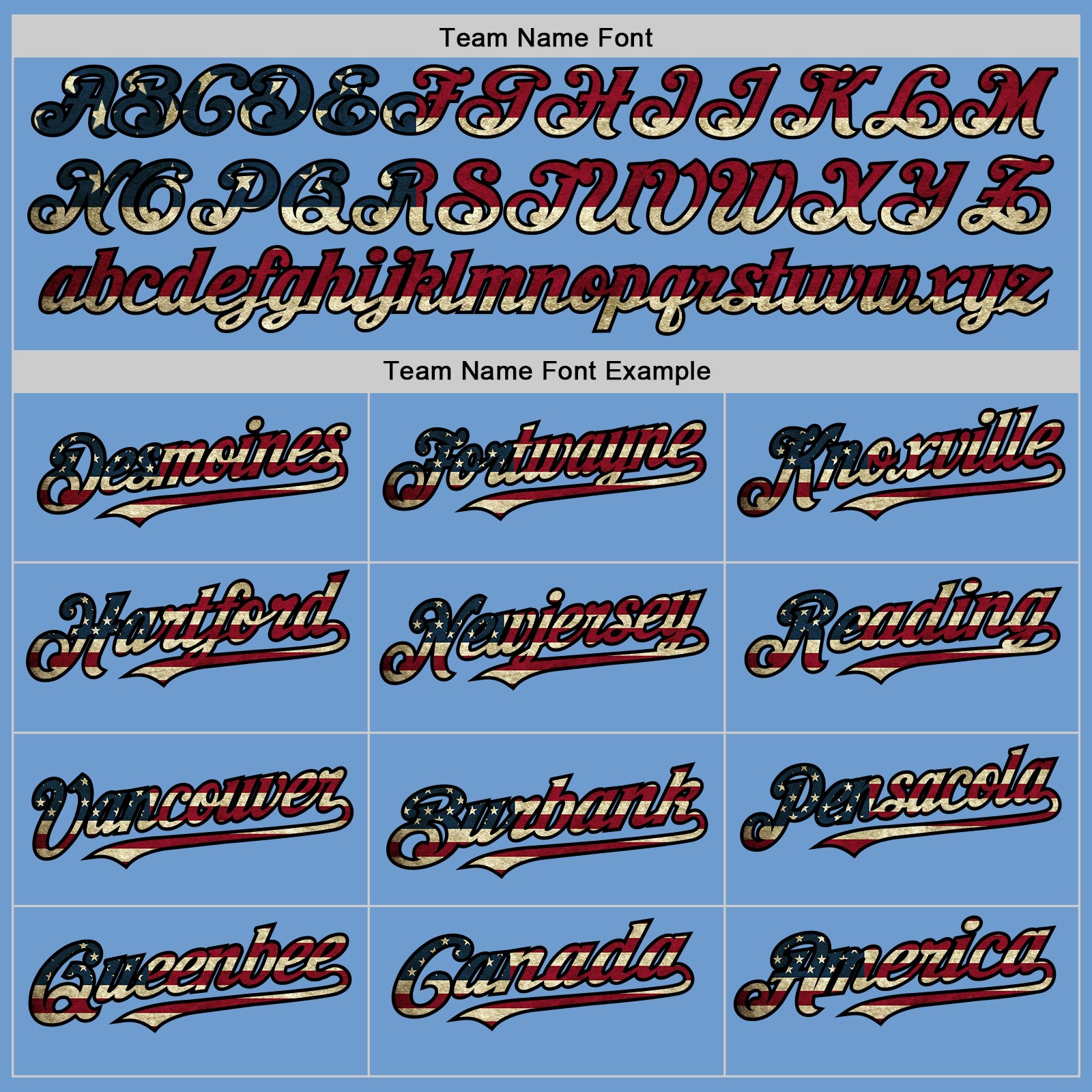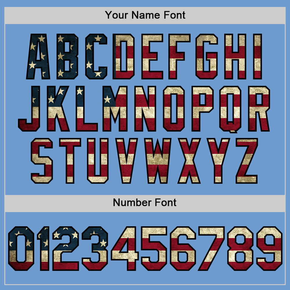 Custom Light Blue Vintage USA Flag Black-Cream Bomber Full-Snap Varsity Letterman Hoodie Jacket