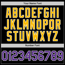 • Загрузить изображение в средство просмотра галереи, Custom Black Purple-Gold Bomber Full-Snap Varsity Letterman Two Tone Lapel Collar Byron Jacket