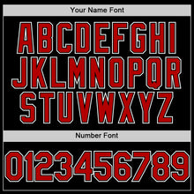 • Загрузить изображение в средство просмотра галереи, Custom Black Red-White Bomber Full-Snap Varsity Letterman Two Tone Lapel Collar Byron Jacket