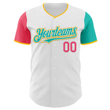 • Загрузить изображение в средство просмотра галереи, Custom White Neon Pink Aqua-Gold Authentic Two Tone Baseball Jersey