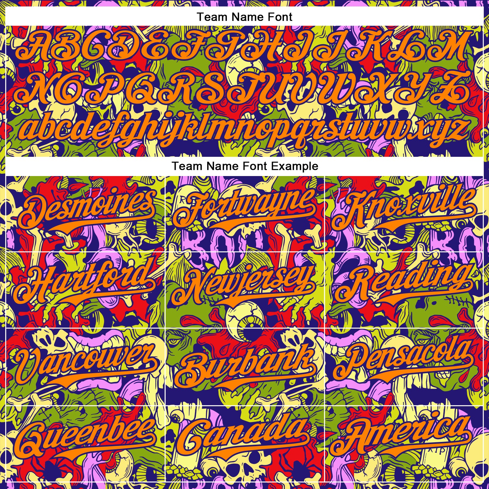 Custom Dark Purple Bay Orange 3D Halloween Skull Doodle Party Costume Ideas Authentic Baseball Jersey