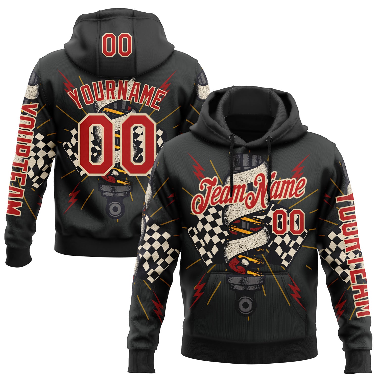Custom White Fire Red City Cream-Yellow 3D Pattern Design Formula Auto Car Racing Motorsport Sports Pullover Sweatshirt Hoodie