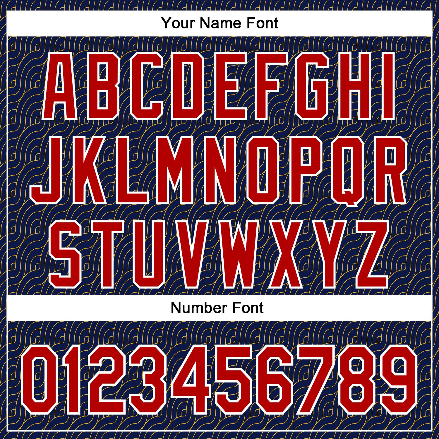 Custom Stitched Navy Red Gold-White 3D Pattern Design Wave Geometric Shape Sports Pullover Sweatshirt Hoodie