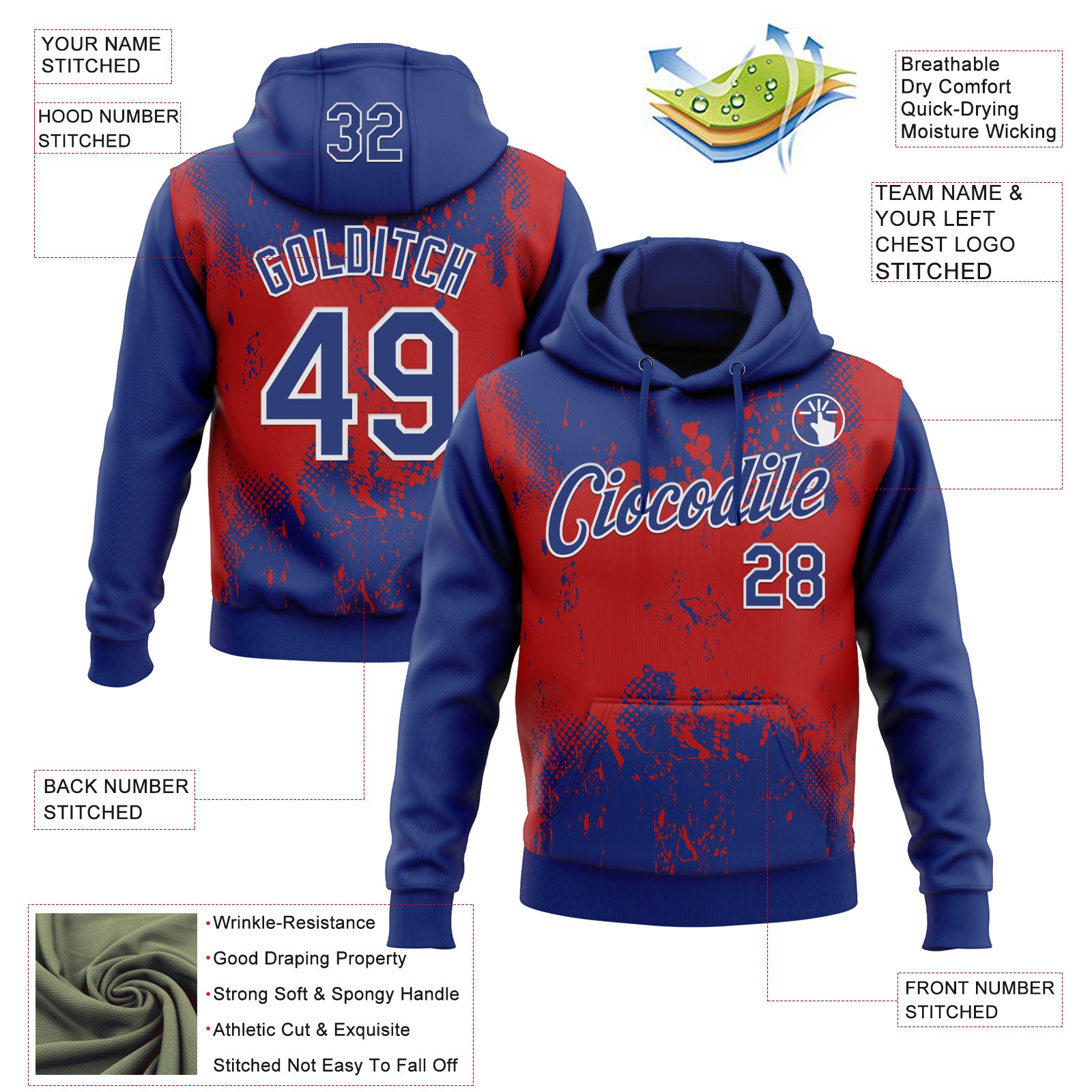 Custom Stitched Royal Red-White 3D Pattern Design Abstract Splatter Grunge Art Sports Pullover Sweatshirt Hoodie