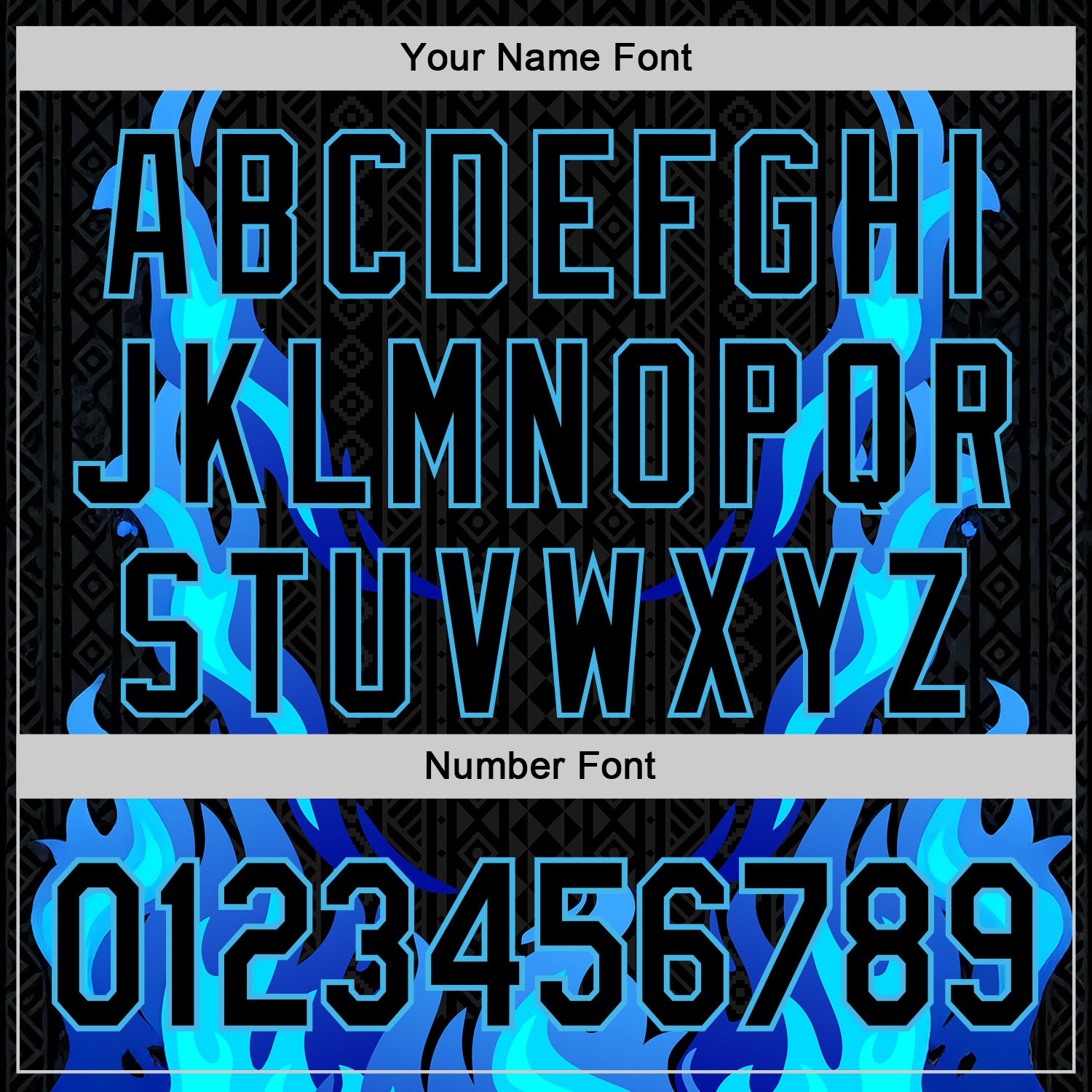 Custom Black Sky Blue 3D Abstract Flame Sports Pullover Sweatshirt Hoodie