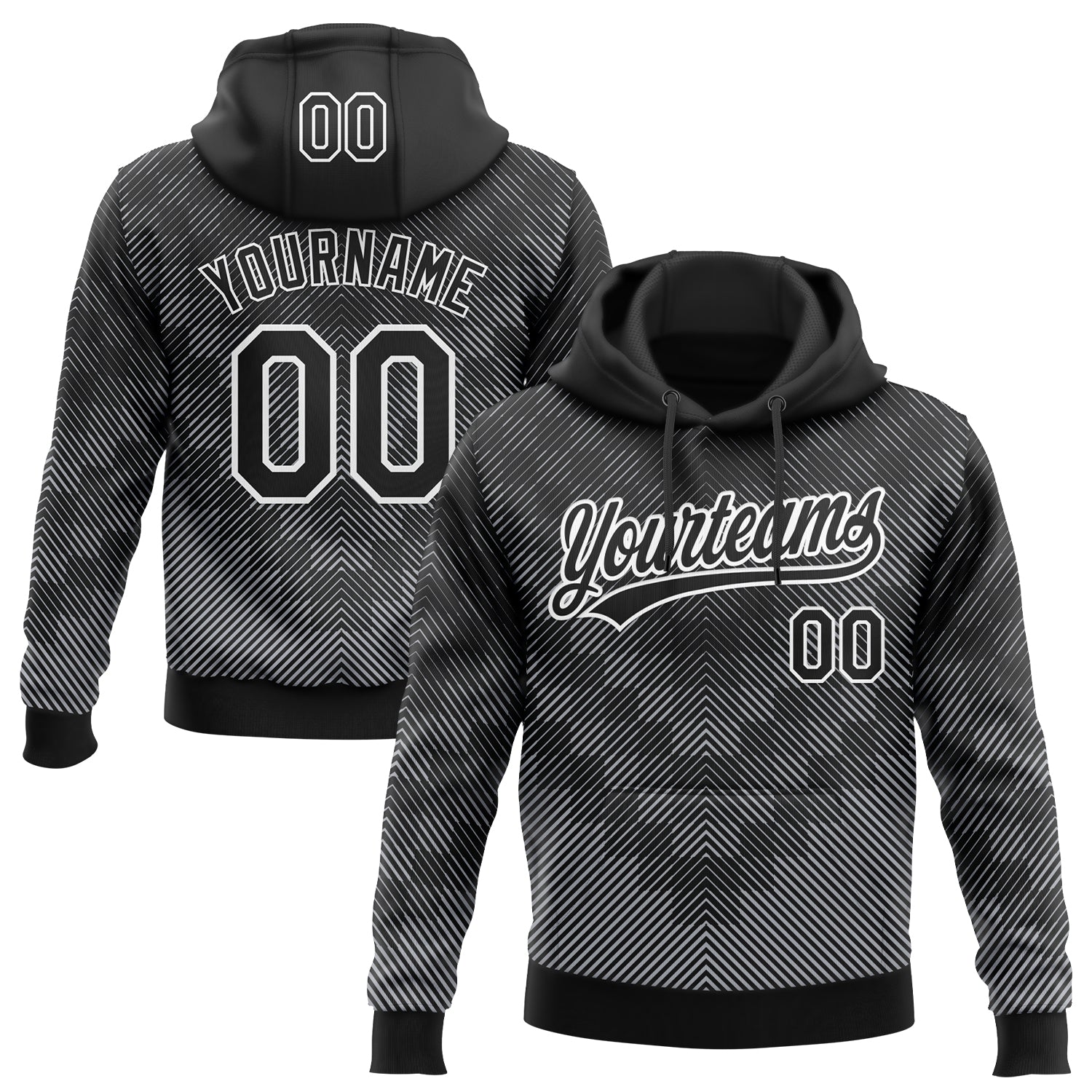 Custom Stitched Black White 3D Pattern Design Line Sportswear Pullover Sweatshirt Hoodie
