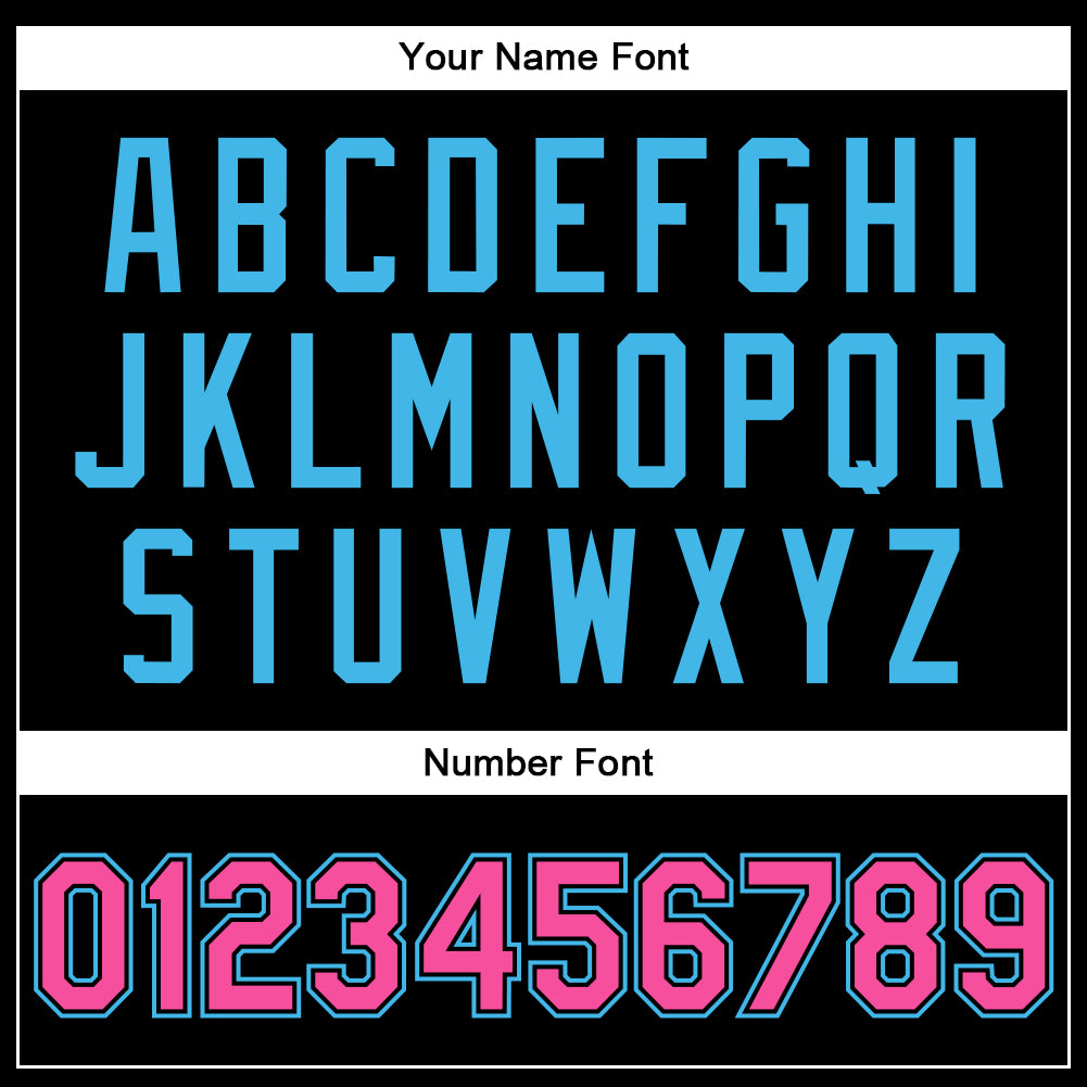 Custom Black Pink-Sky Blue Bomber Full-Snap Varsity Faux Leather Letterman Jacket