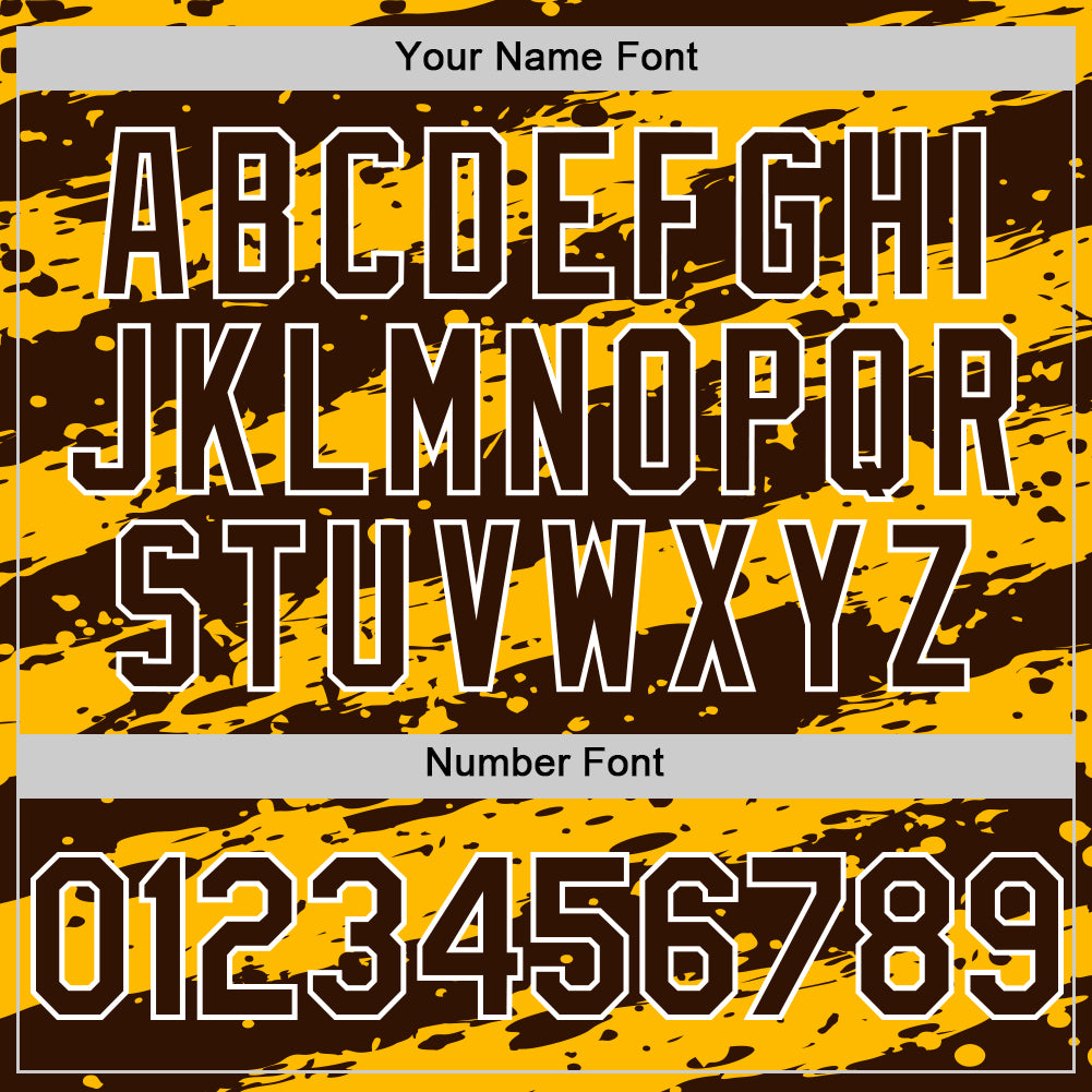 Custom Gold Brown-White Splash 3D Pattern Design Bomber Full-Snap Varsity Letterman Hoodie Jacket