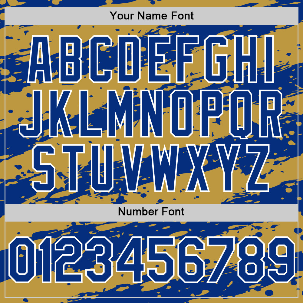 Custom Old Gold Royal-White Splash 3D Pattern Design Bomber Full-Snap Varsity Letterman Hoodie Jacket