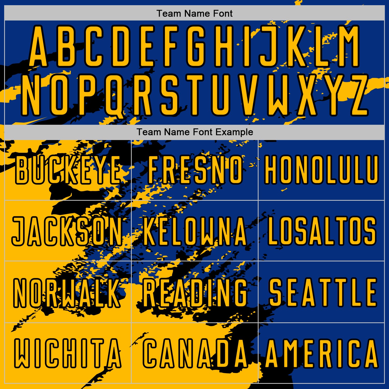 Custom Royal Gold-Black Abstract Fragment Art Splash Sports Sublimation Soccer Uniform Jersey