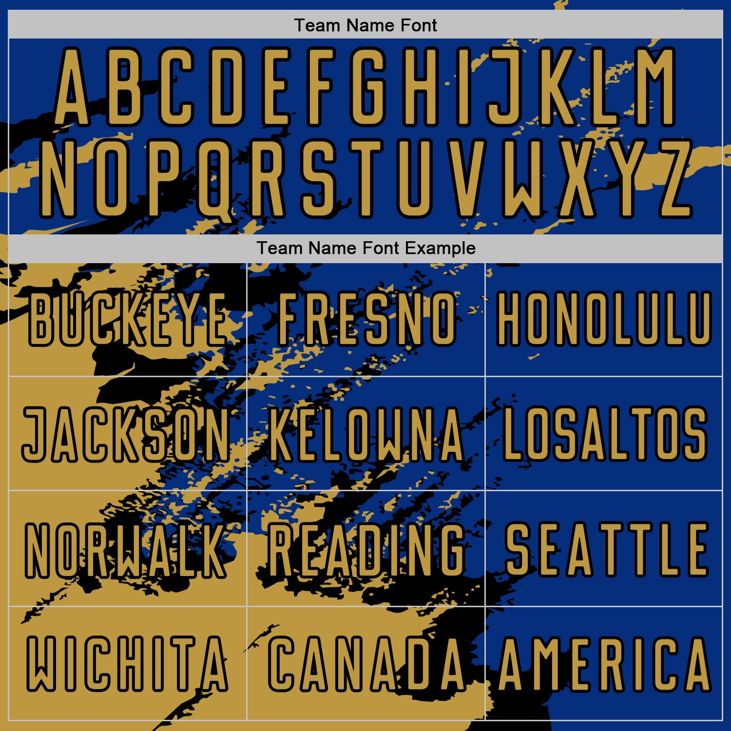 Custom Royal Old Gold-Black Abstract Fragment Art Splash Sports Sublimation Soccer Uniform Jersey