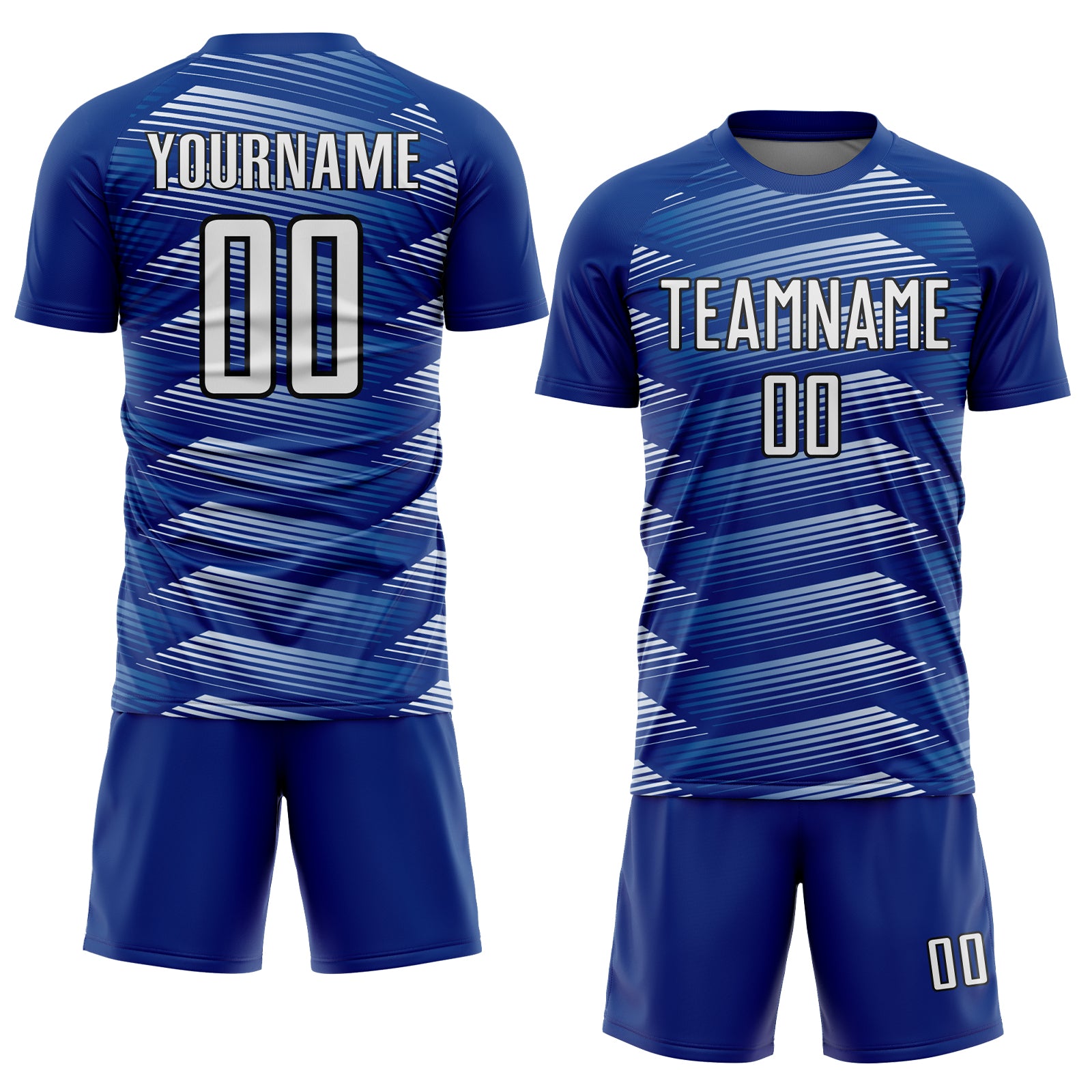 Custom Royal White-Black Stripe Line Sublimation Soccer Uniform Jersey