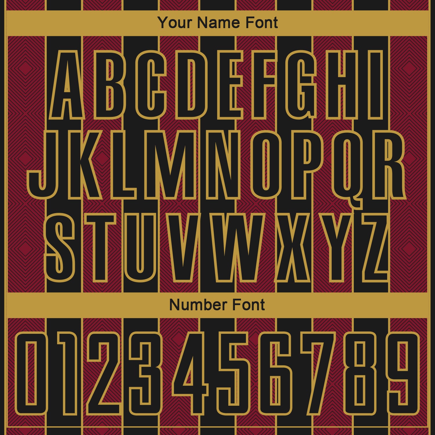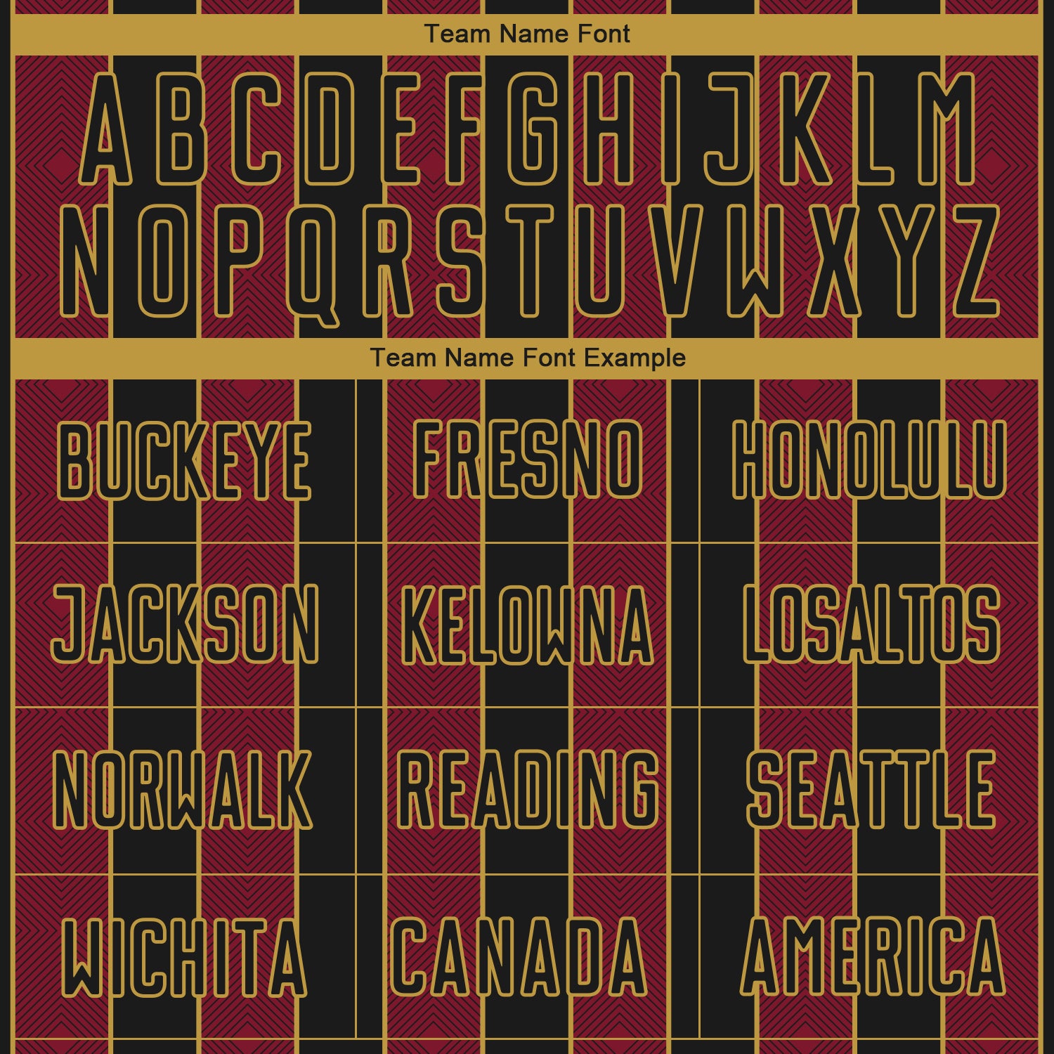 Custom Black Crimson-Old Gold Pinstripe Line Sports Sublimation Soccer Uniform Jersey