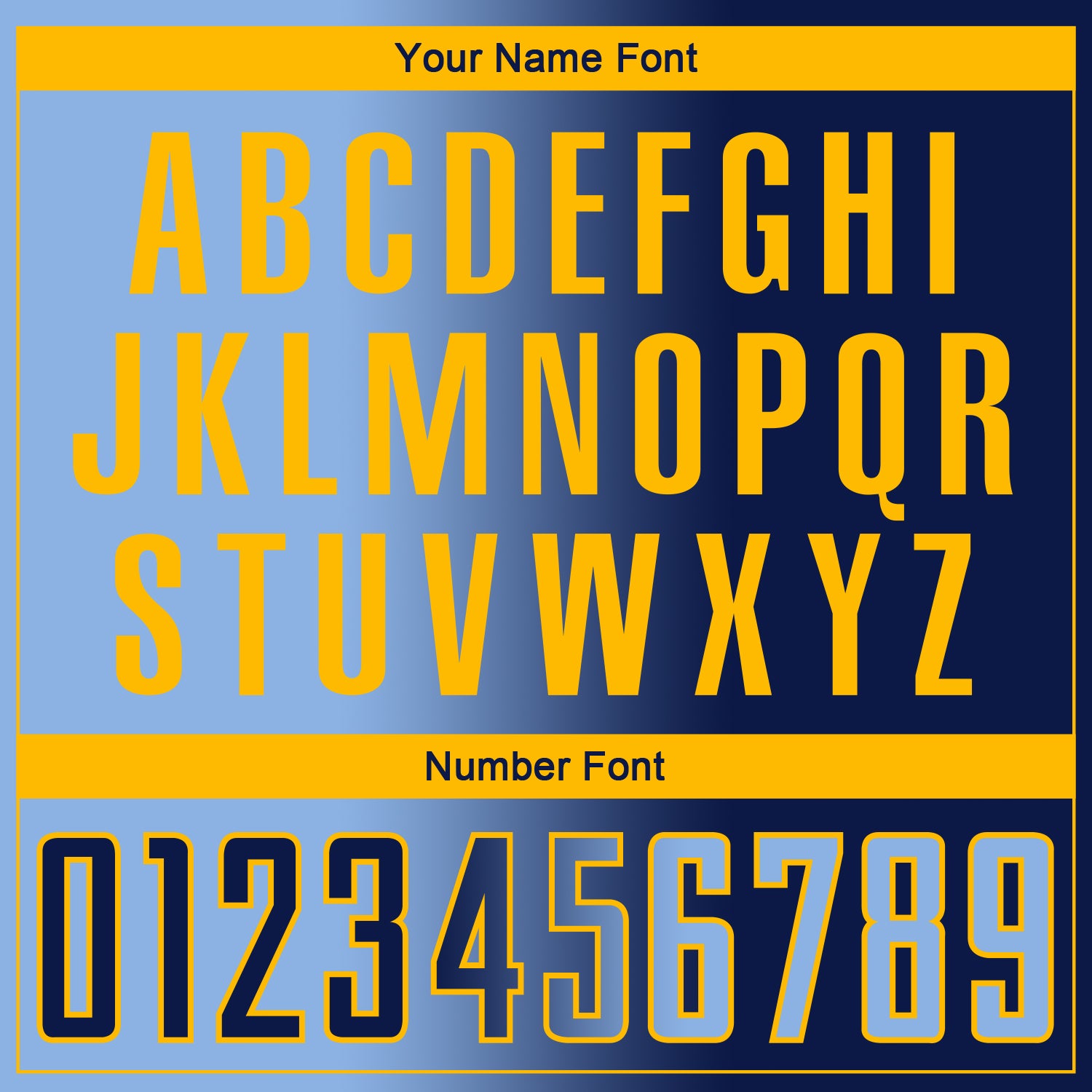 Custom Navy Light Blue-Gold Sublimation Gradient Fashion Soccer Uniform Jersey
