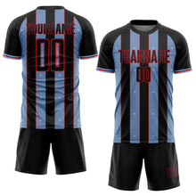 • Загрузить изображение в средство просмотра галереи, Custom Black Light Blue-Red Pinstripe Line Sports Sublimation Soccer Uniform Jersey