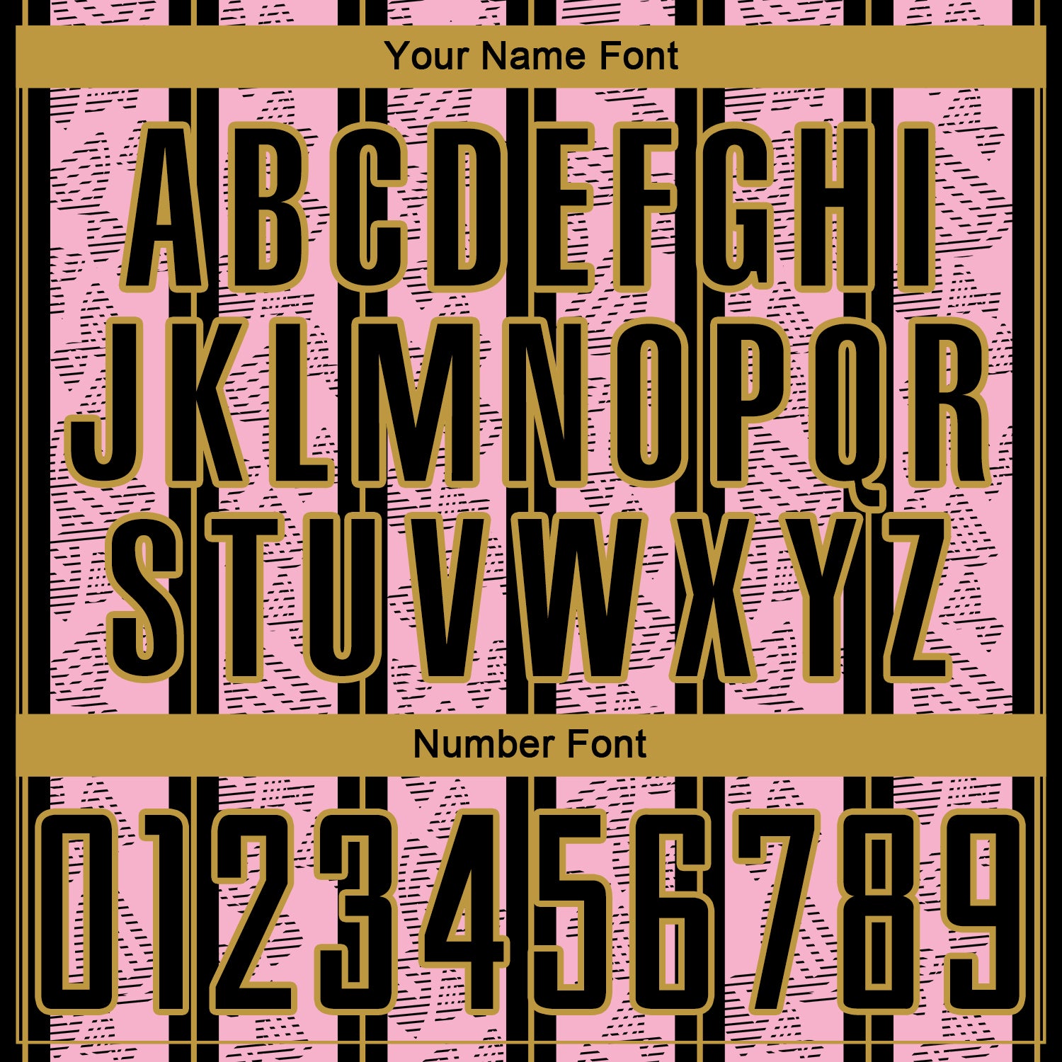 Custom Light Pink Black-Old Gold Stripe Line Sublimation Soccer Uniform Jersey