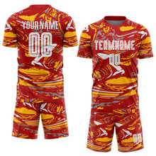 • Загрузить изображение в средство просмотра галереи, Custom Figure Light Blue Red-Gold Fluid Art Splash Sublimation Soccer Uniform Jersey