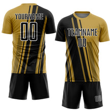 • Загрузить изображение в средство просмотра галереи, Custom Old Gold Black-White Lines Sports Sublimation Soccer Uniform Jersey