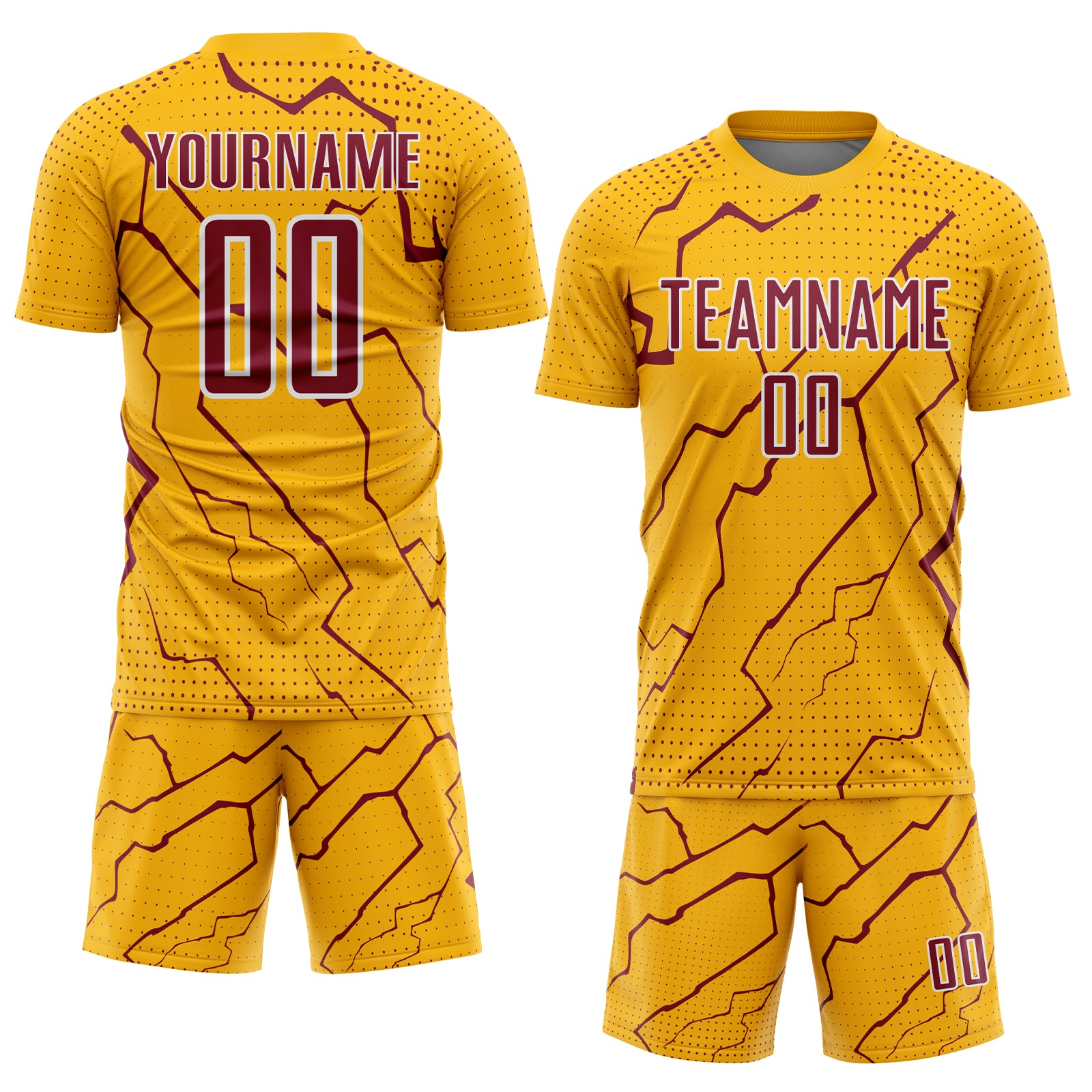 Custom Gold Crimson-White Lightning Sports Sublimation Soccer Uniform Jersey