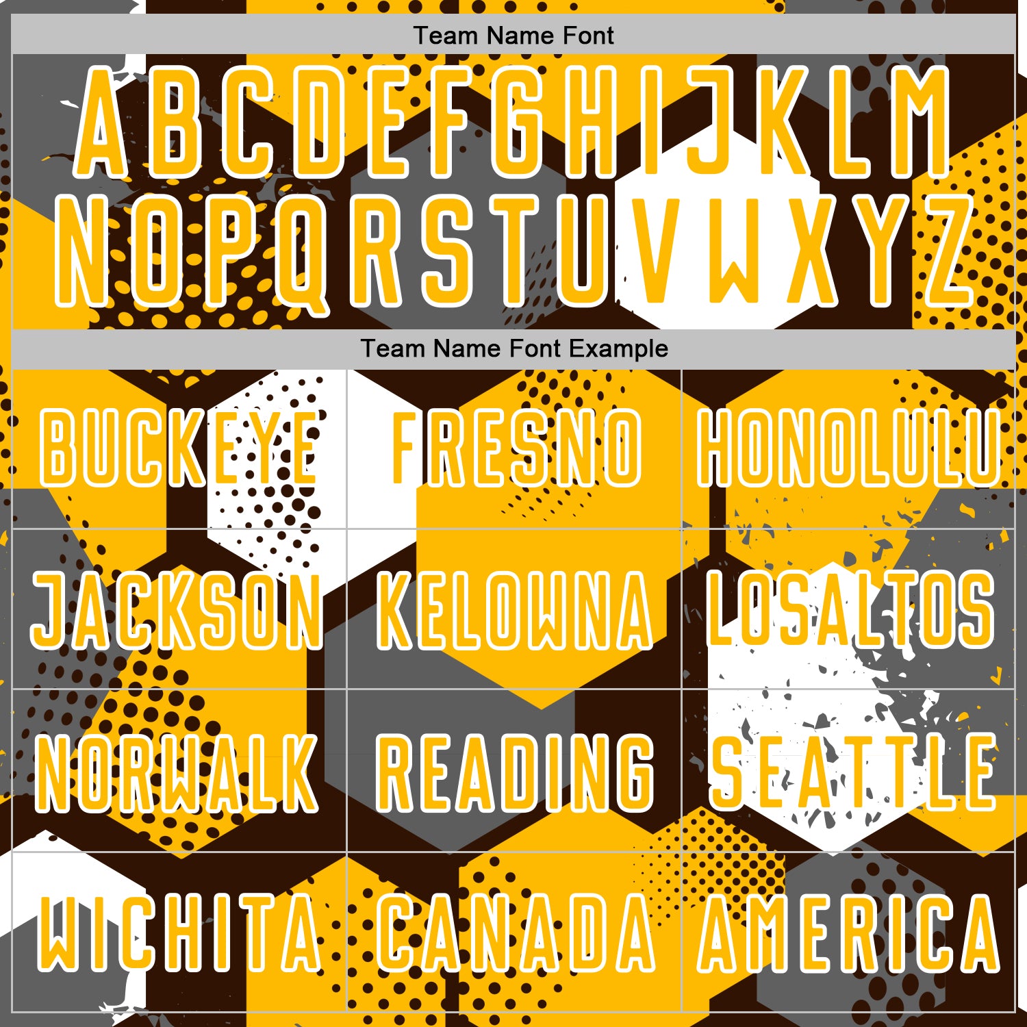 Custom Brown Gold-White Geometric Shape Sublimation Soccer Uniform Jersey