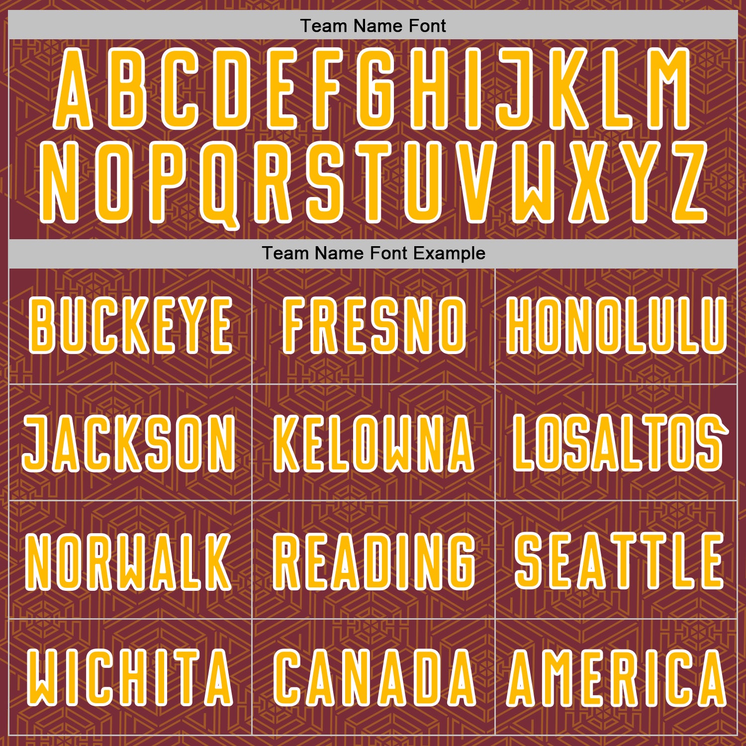 Custom Burgundy Gold-White Geometric Shape Sports Sublimation Soccer Uniform Jersey
