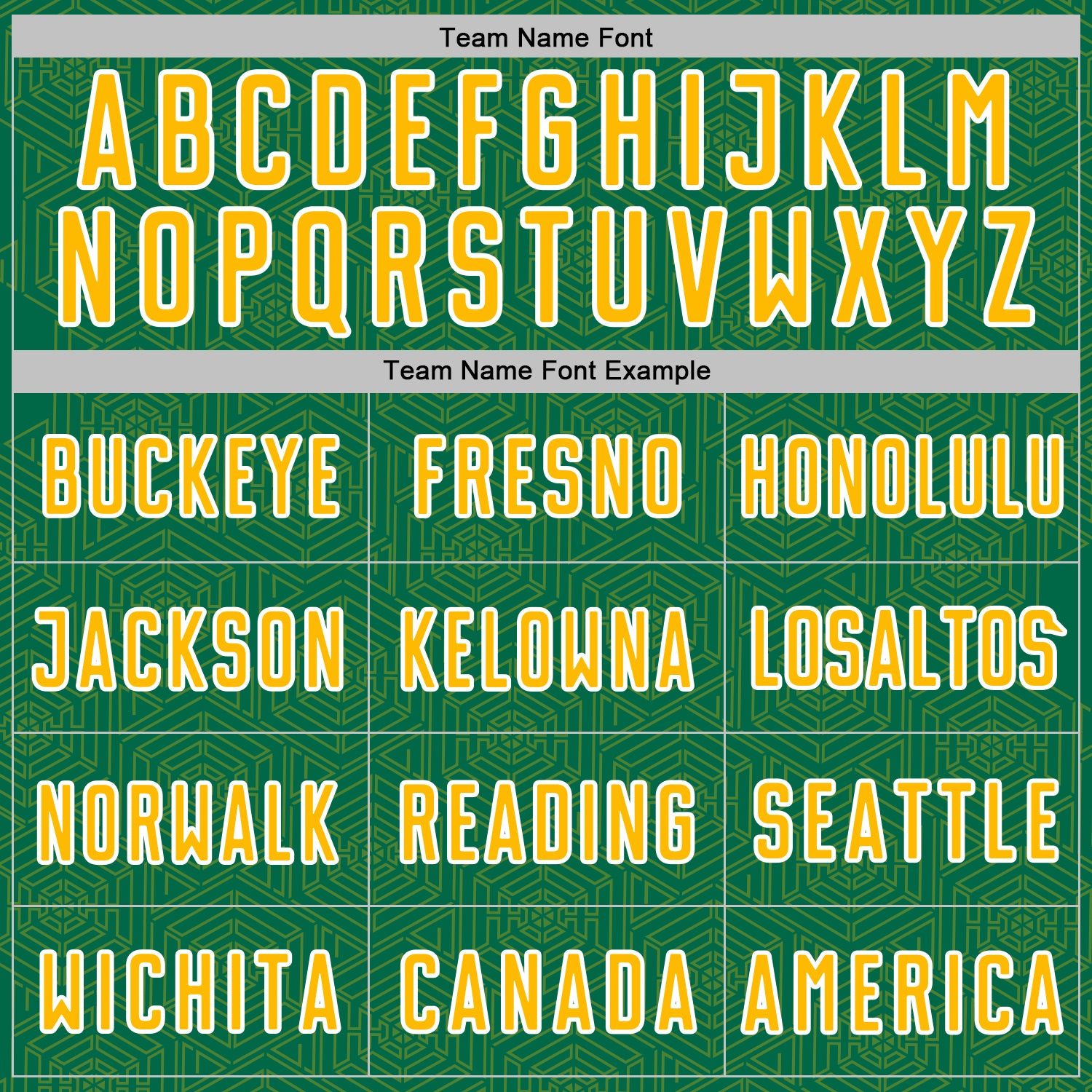 Custom Kelly Green Gold-White Geometric Shape Sports Sublimation Soccer Uniform Jersey