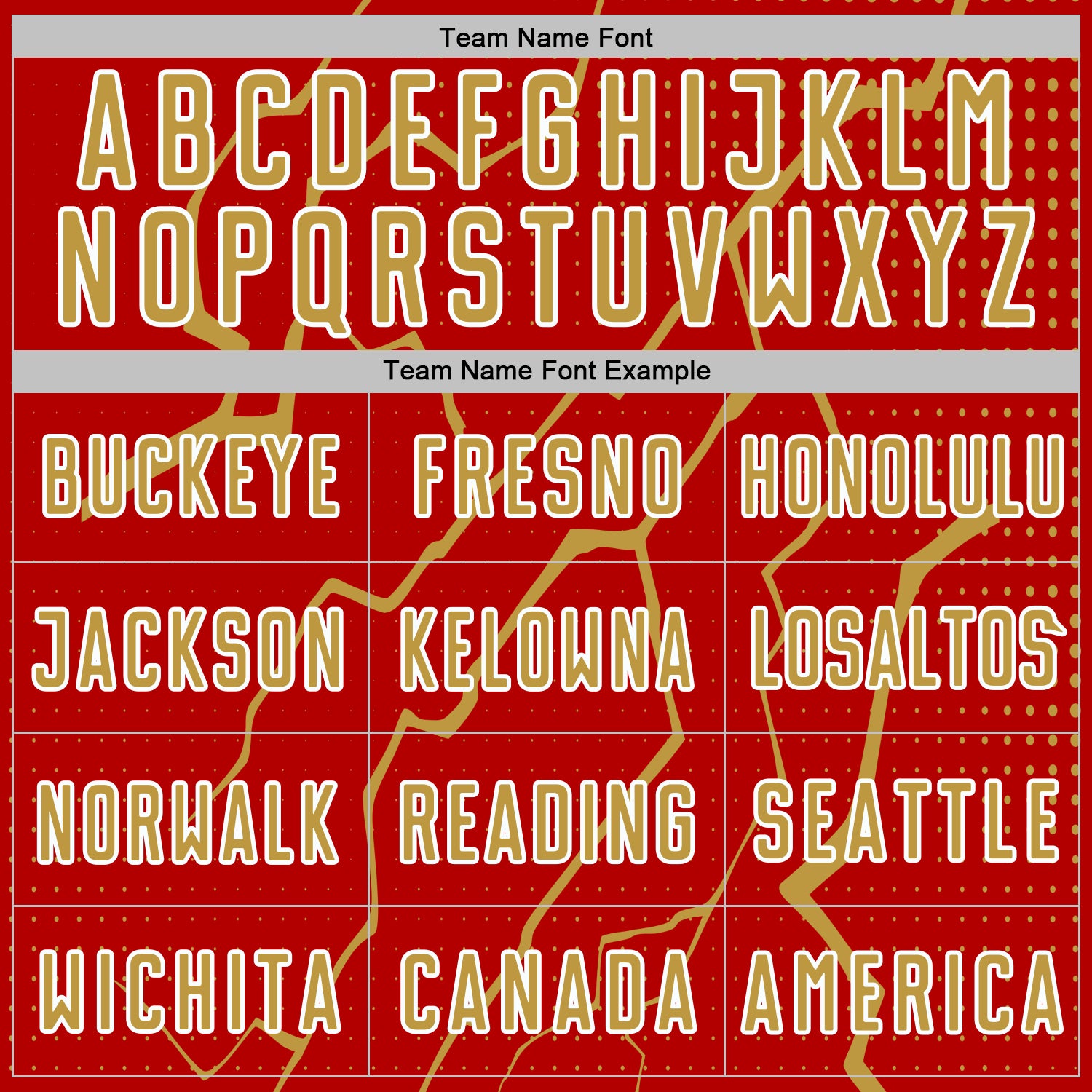 Custom Red Old Gold-White Lightning Sports Sublimation Soccer Uniform Jersey