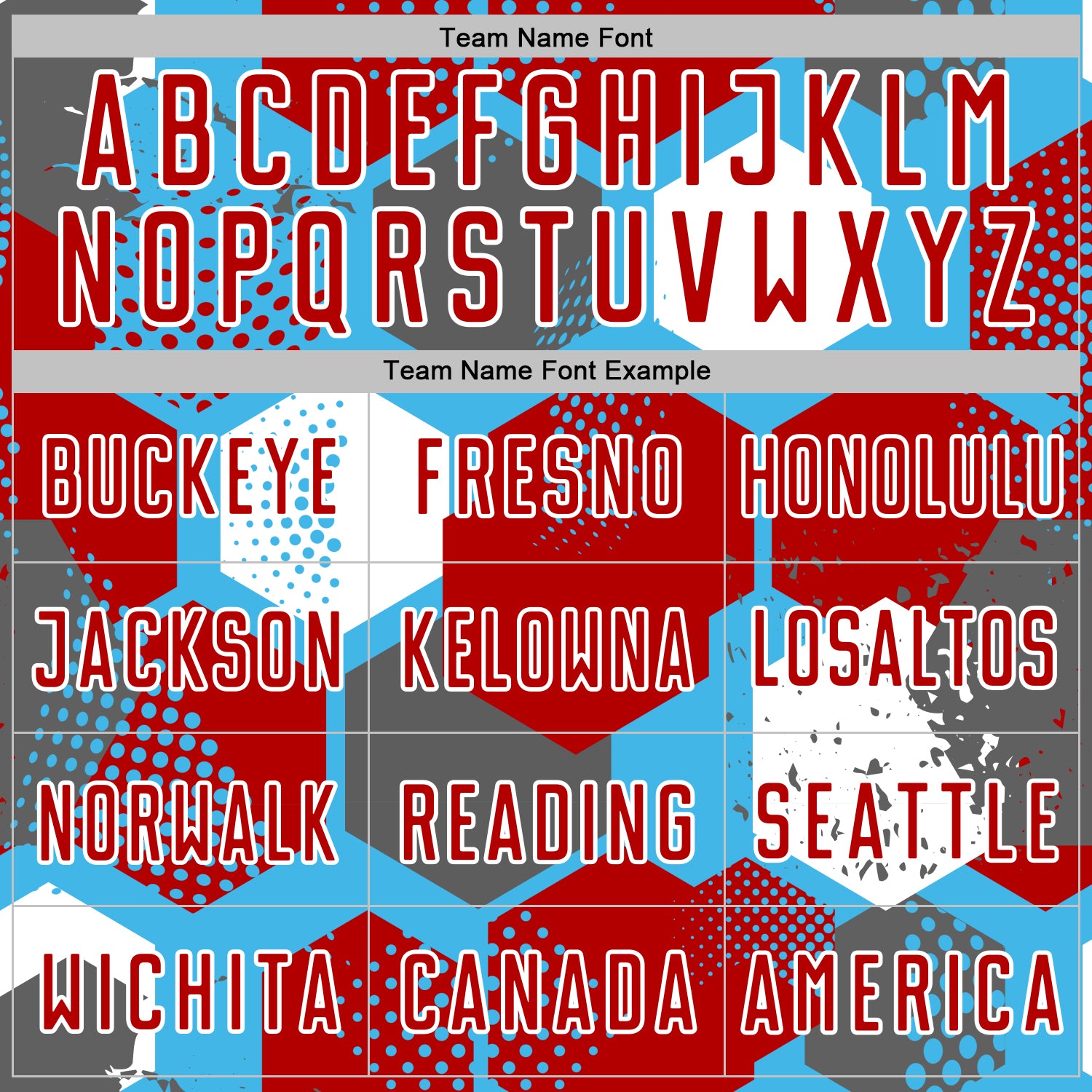 Custom Sky Blue Red-White Geometric Shape Sublimation Soccer Uniform Jersey