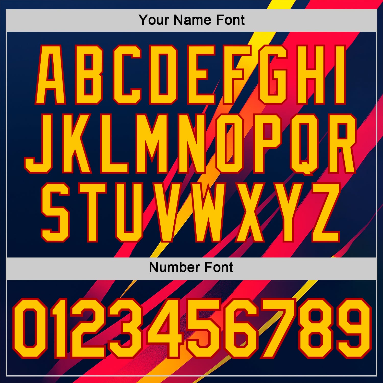 Custom Blue Yellow-Red 3D Pattern Design Gradient Line Sportswear Performance T-Shirt
