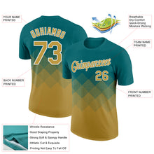 • Загрузить изображение в средство просмотра галереи, Custom Teal Old Gold-White 3D Pattern Design Gradient Square Shapes Performance T-Shirt