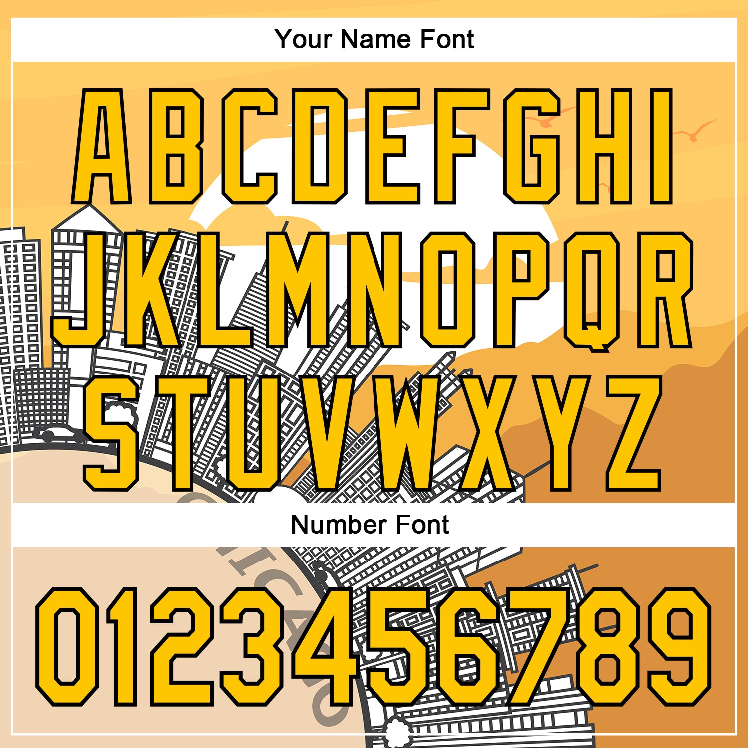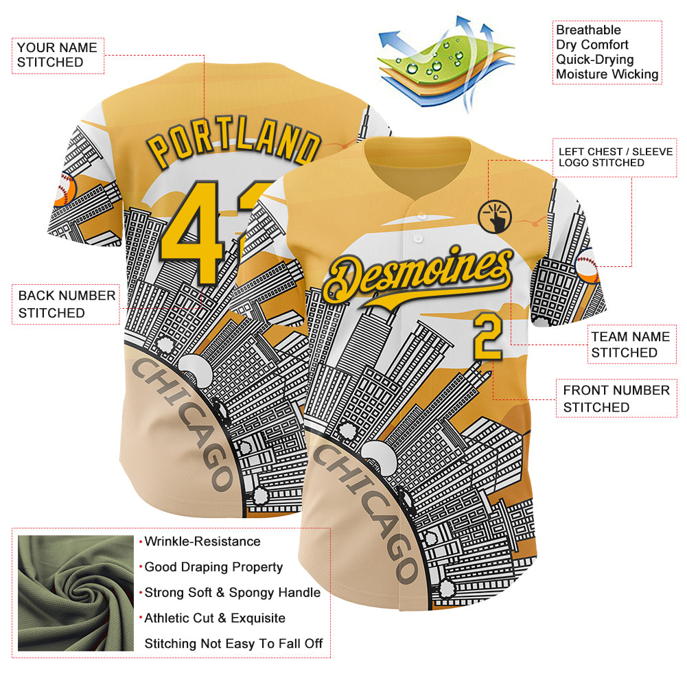 Custom Yellow Black-White Chicago Illinois Cityscape Landmark City Symbol Authentic Baseball Jersey