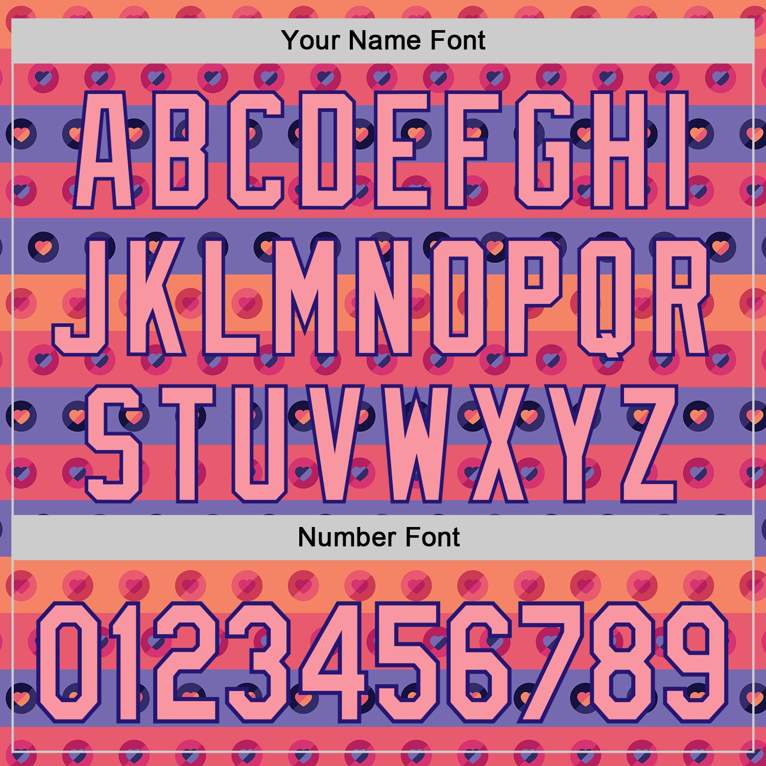 Custom Orange Medium Pink-Dark Purple Valentine's Day Love Heart Authentic Baseball Jersey