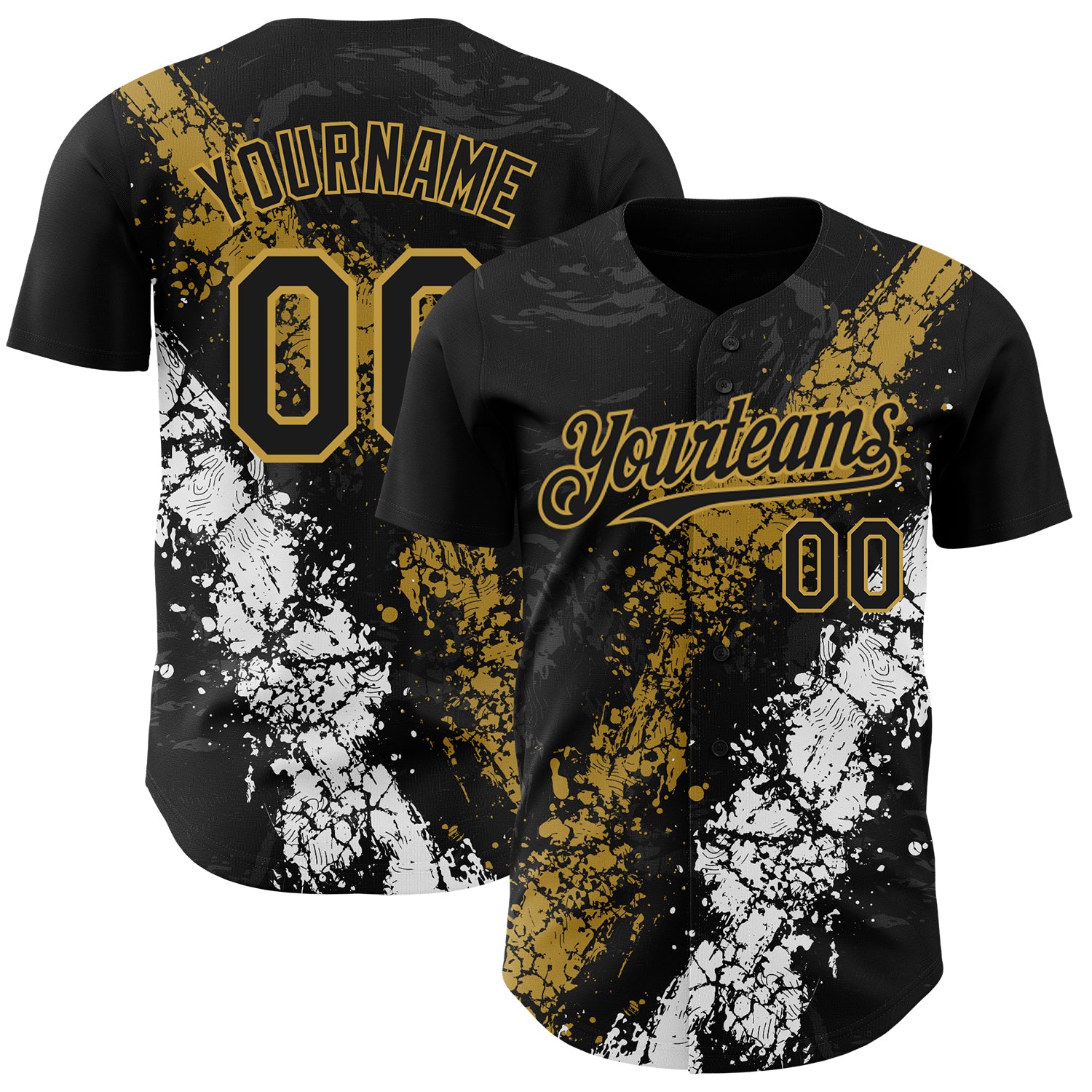 Custom Black Old Gold-White 3D Pattern Design Splash Authentic Baseball Jersey