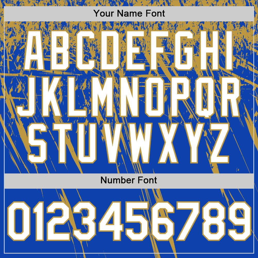 Custom Thunder Blue White-Old Gold Distressed Scratch Brush Stroke Authentic Baseball Jersey