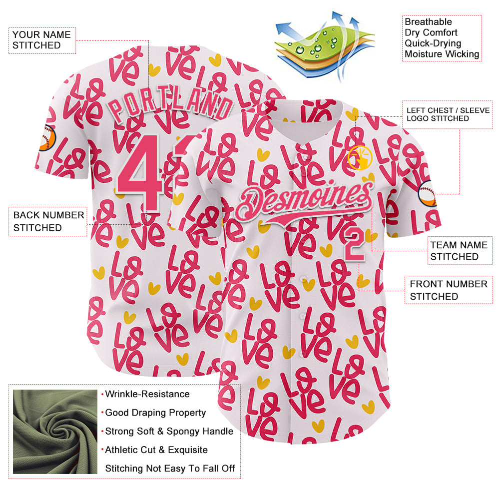 Custom Light Pink Neon Pink-White Valentine's Day Love Heart Authentic Baseball Jersey