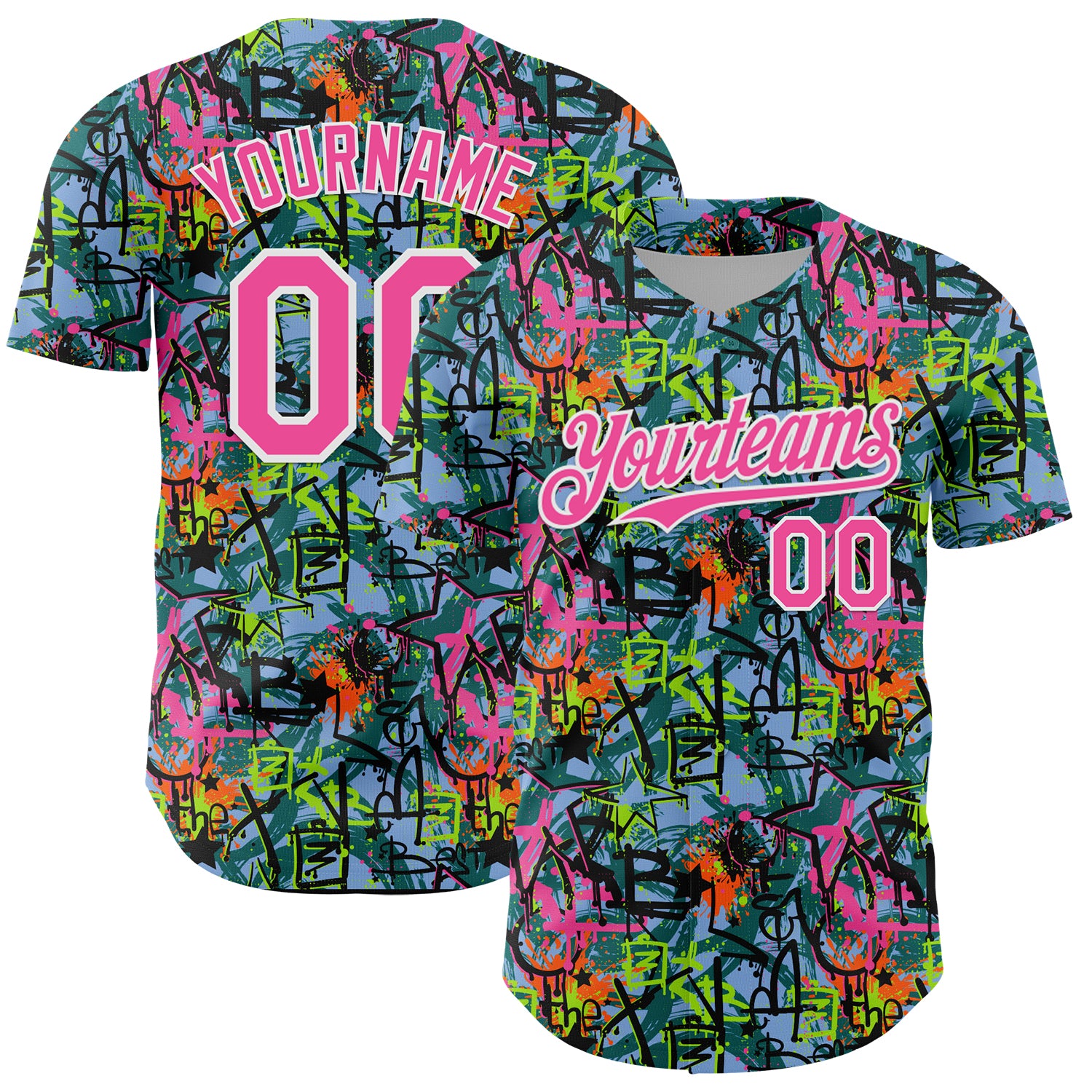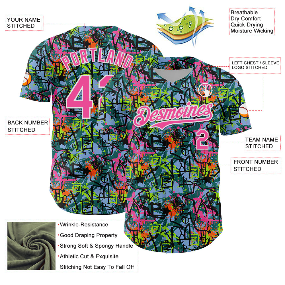 Custom Graffiti Pattern Pink-White Splatter Authentic Baseball Jersey