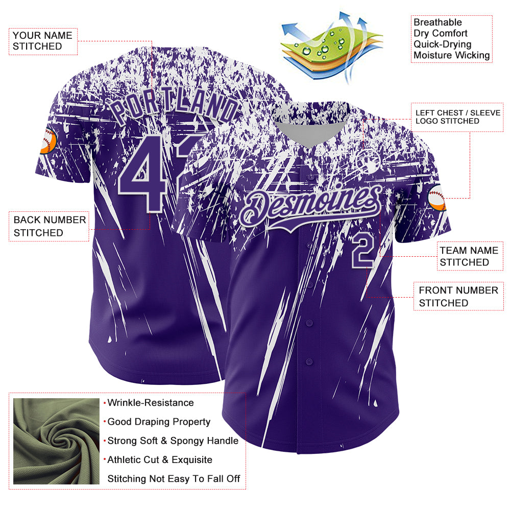 Custom Purple White Distressed Scratch Brush Stroke Authentic Baseball Jersey