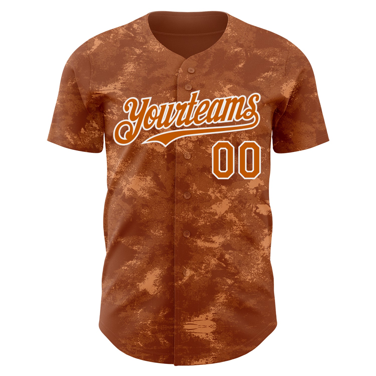 Custom Tie Dye Texas Orange-White 3D Authentic Baseball Jersey