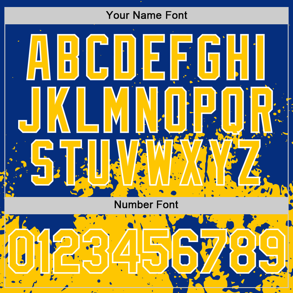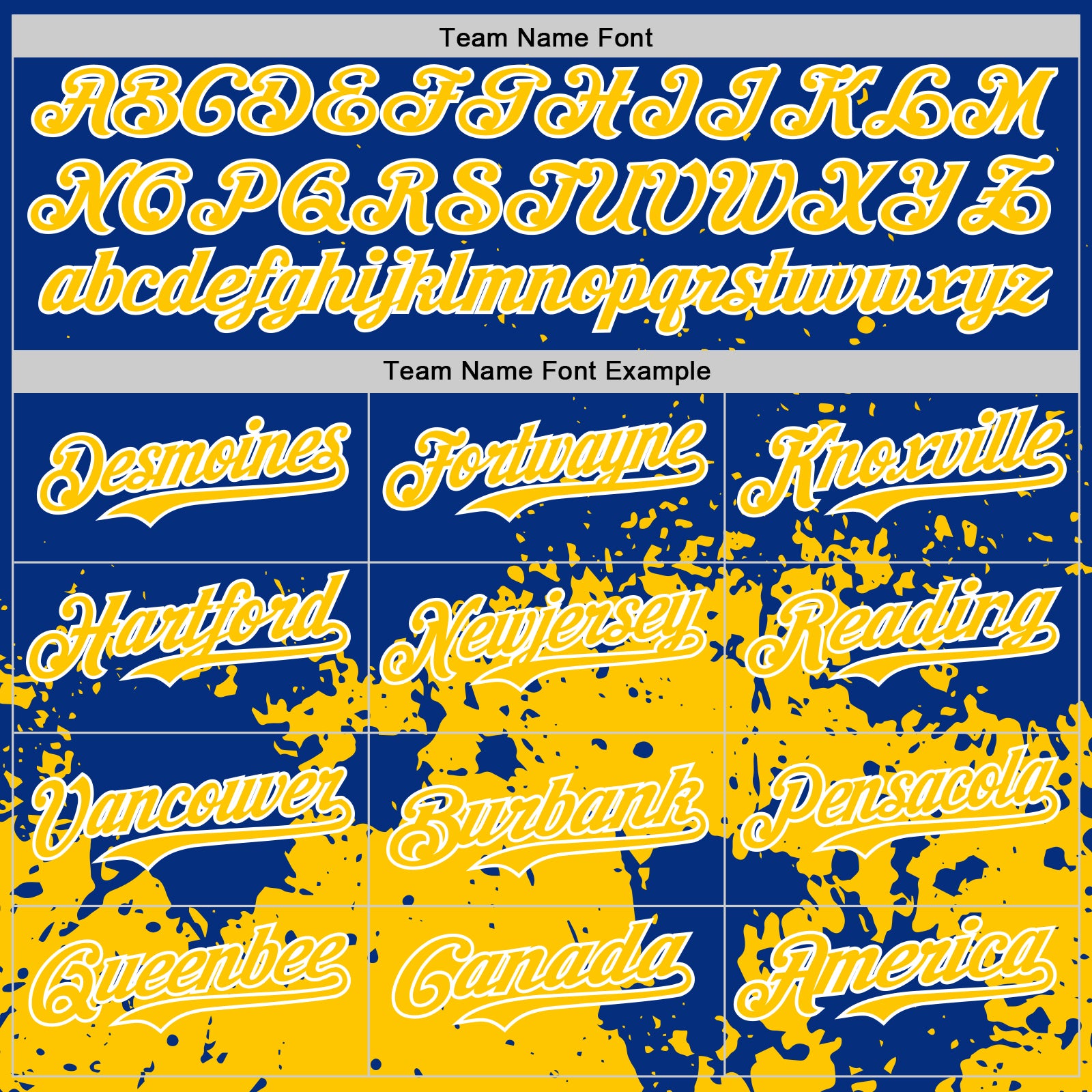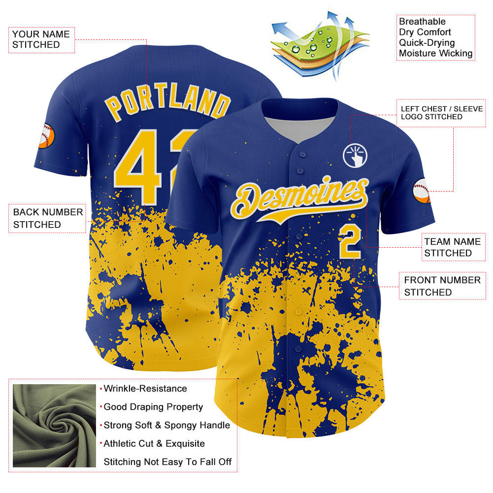 Custom Royal Yellow-White Abstract Splatter Grunge Authentic Baseball Jersey