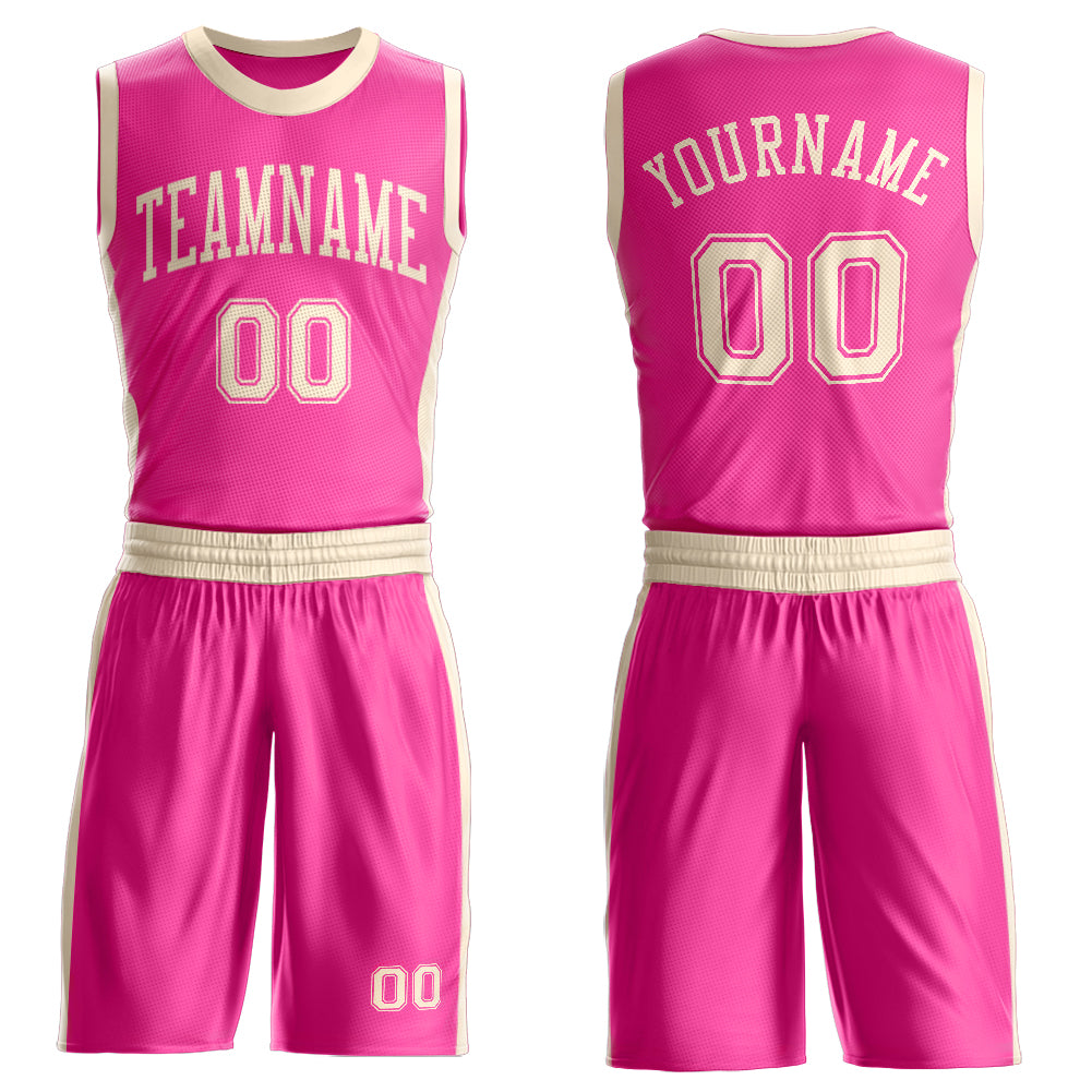 Custom Pink Cream Round Neck Suit Basketball Jersey