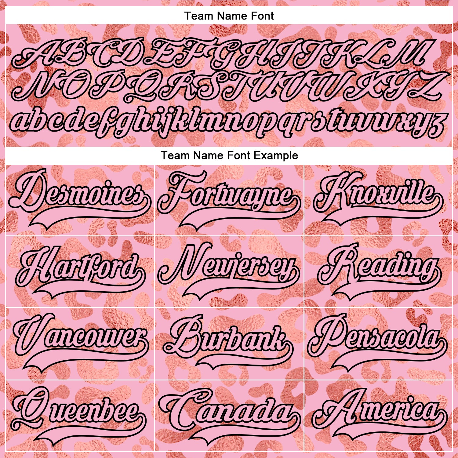 Custom Light Pink Black 3D Pattern Leopard Print Neon Hockey Lace Neck Jersey