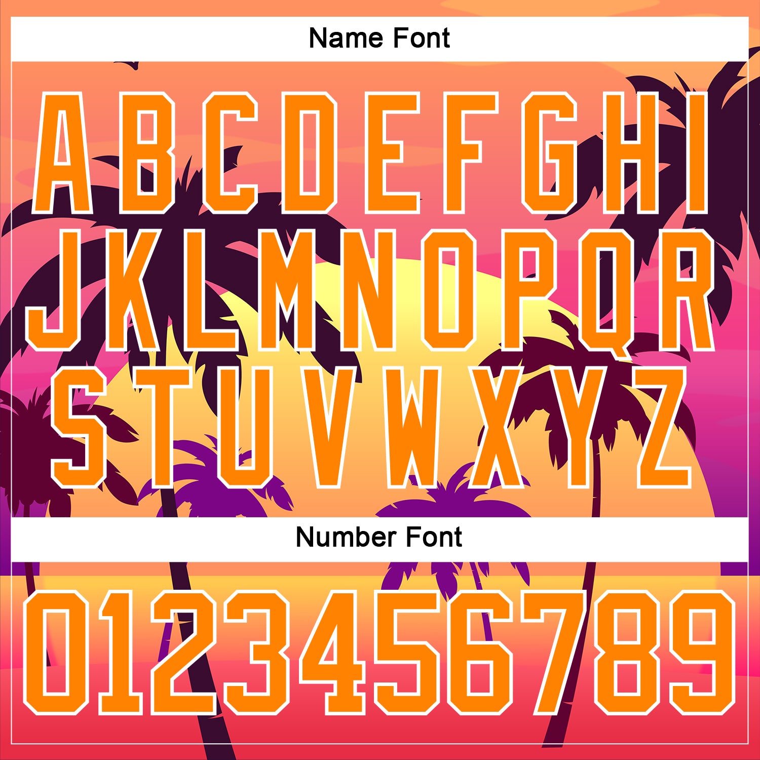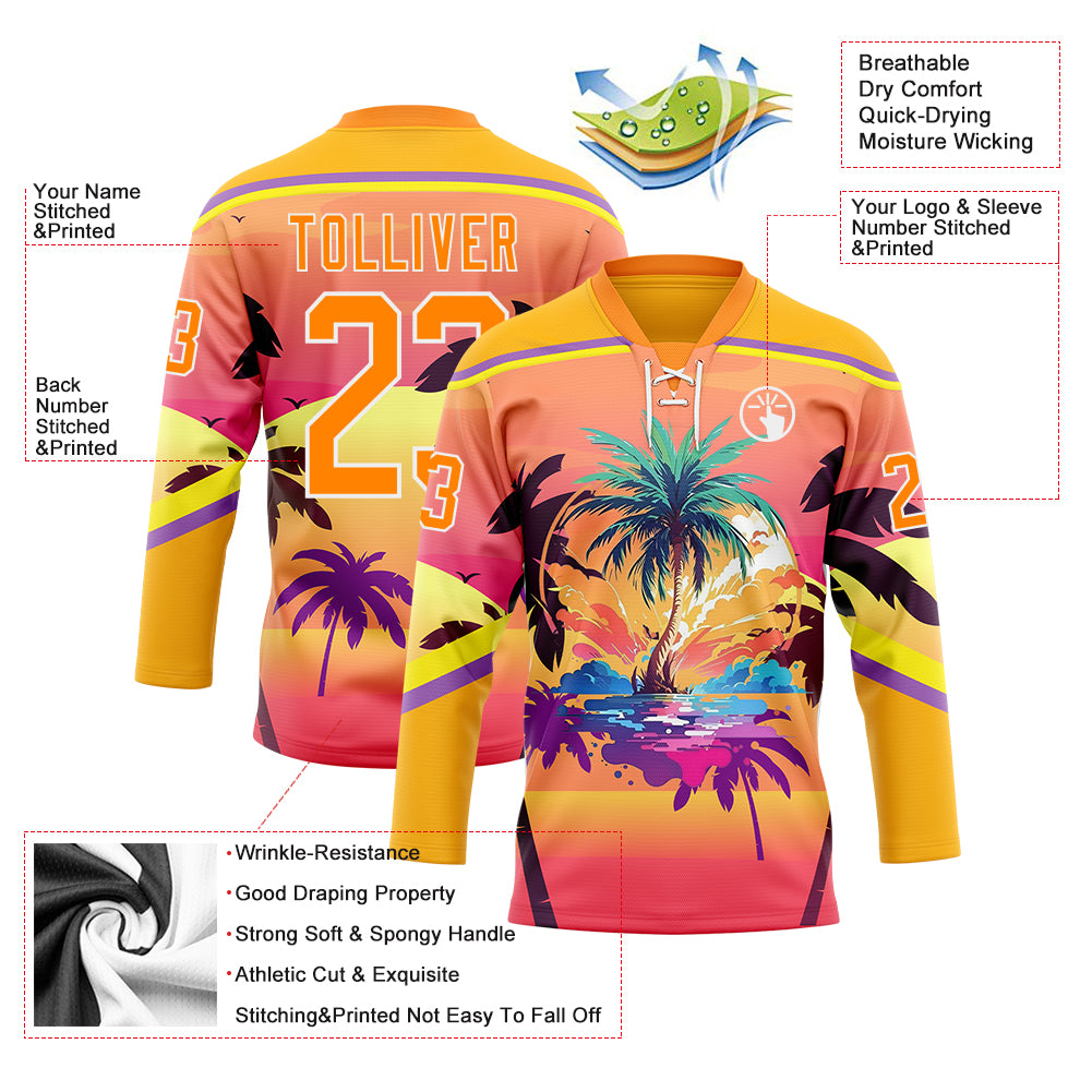 Custom Yellow Bay Orange Medium Purple-White 3D Pattern Gradient Hawaii Tropical Palm Trees Hockey Lace Neck Jersey