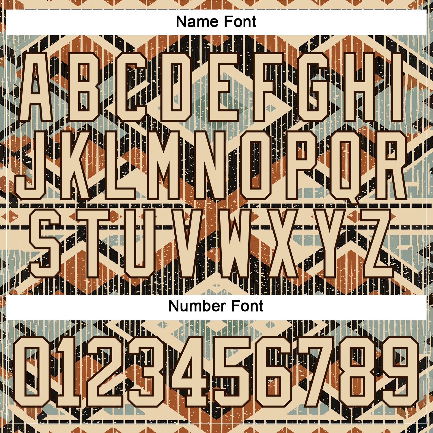 Custom Brown City Cream Orange-Blue 3D Pattern Tribal Indigenous Grunge Geometric Splash Hockey Lace Neck Jersey
