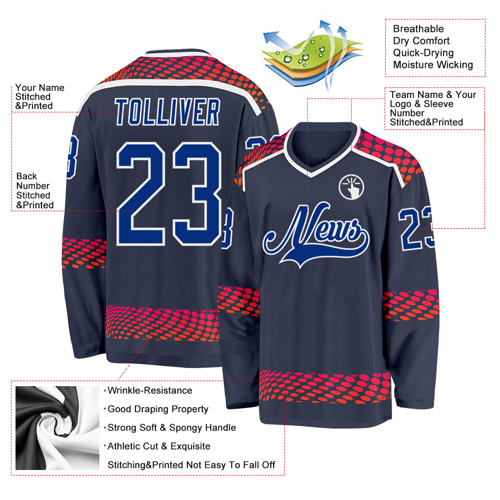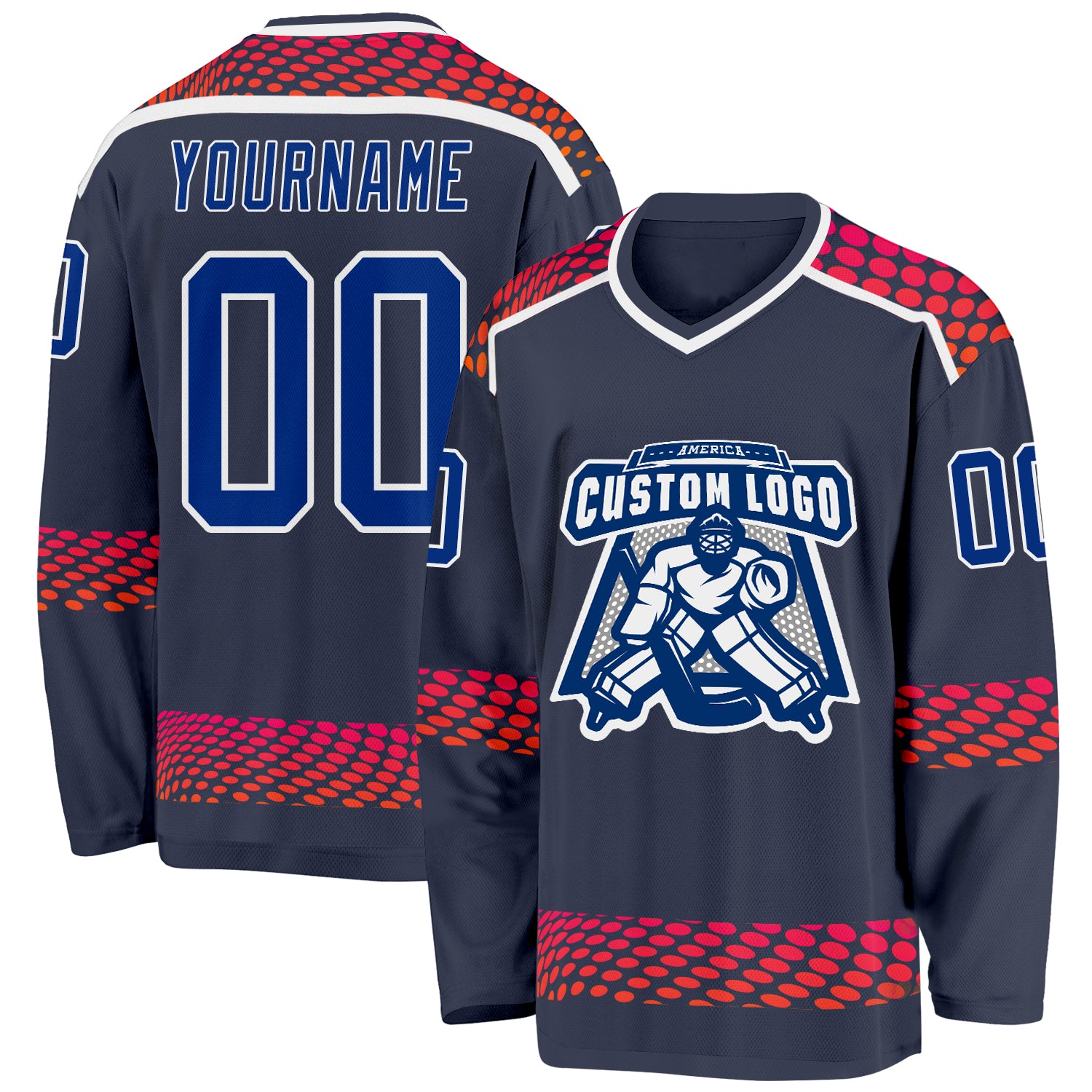 Custom Navy Royal Red-White 3D Pattern Round Hockey Jersey