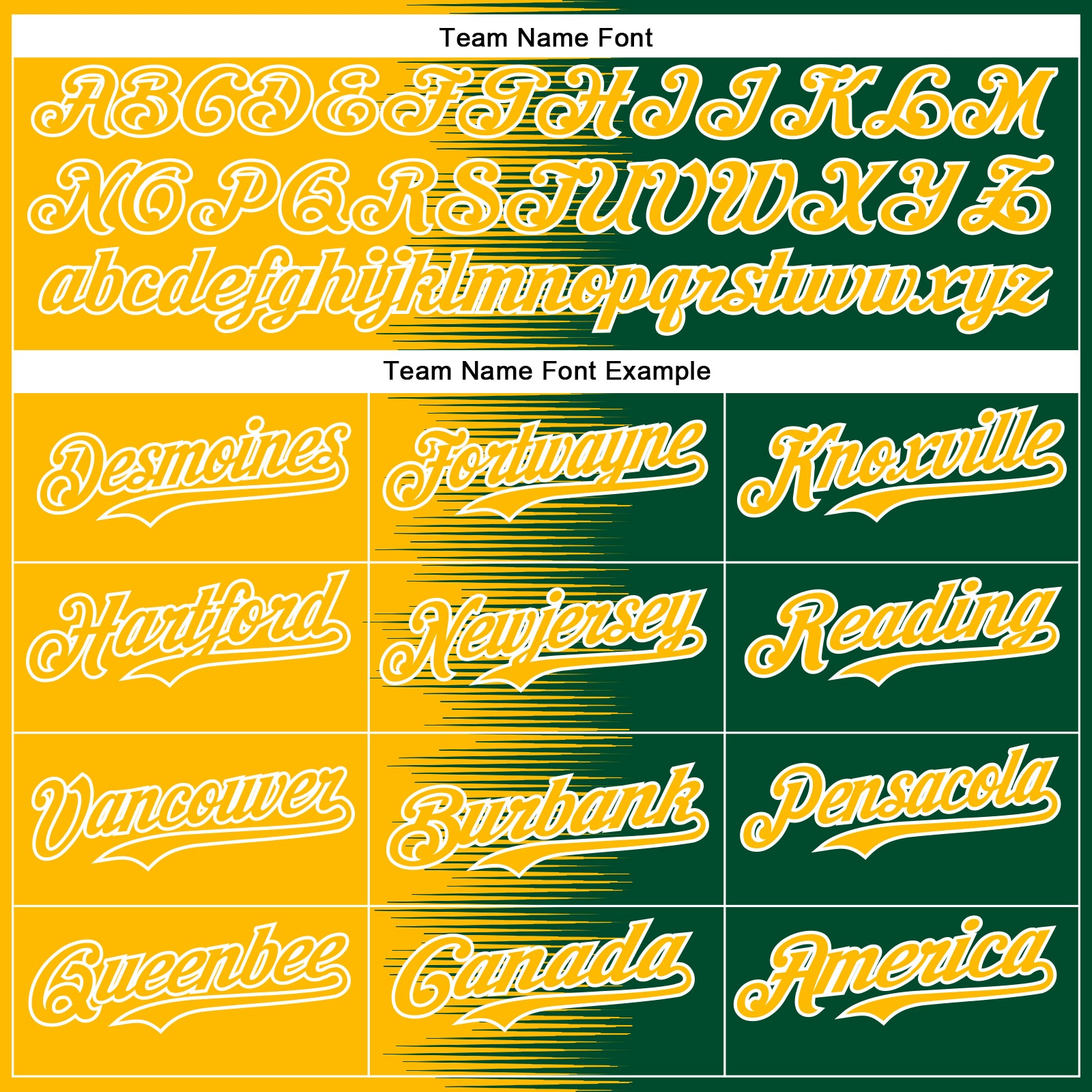 Custom Gold Kelly Green-White Gradient Line Bomber Full-Snap Varsity Letterman Hoodie Jacket