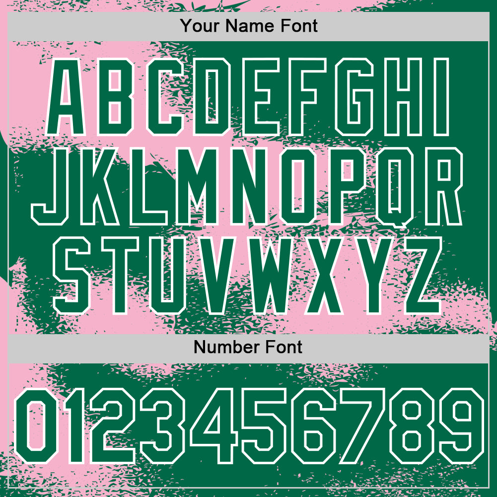 Custom Kelly Green Light Pink-White Abstract Color Blocks Fragment 3D Pattern Design Bomber Full-Snap Varsity Letterman Hoodie Jacket