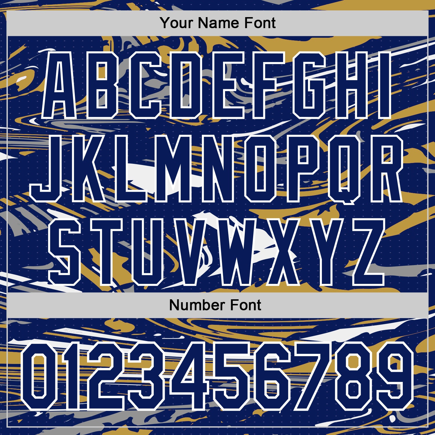 Custom Figure Royal Old Gold-White Fluid Bomber Full-Snap Varsity Letterman Hoodie Jacket