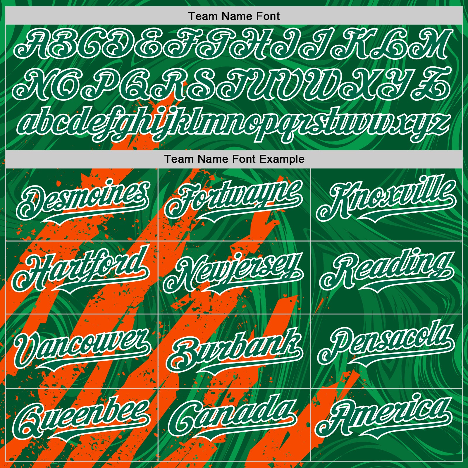 Custom Kelly Green Orange-White Splash 3D Pattern Design Bomber Full-Snap Varsity Letterman Hoodie Jacket